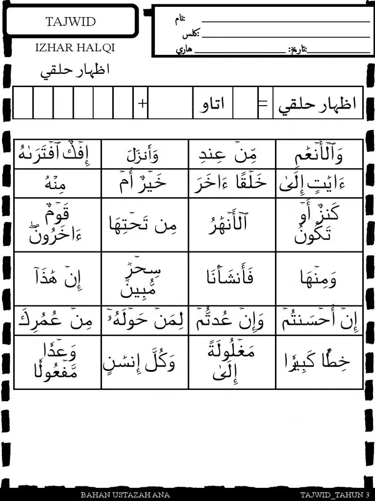 Mari belajar hukum tajwid izhar halqi di ummi aisyah channel. Latihan ulangkaji pelajaran tajweed darjah 6 worksheet blog, . Hukum izhar halqi buku teks pendidikan islam : Tajwid online worksheet for tahun 3.